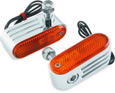 BikeMaster LED Director Turn Signals Pair - Black/AmberVendor:BikeMasterTrick, directional shape houses 15 super-bright amber LEDs. Lightweight ABS construction. Waterproof wire grommets. Rubber anti-vibration mounts help absorb the occasional hit. Plated hardware for long life.