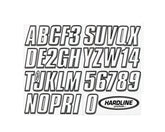 Hardline Boat Lettering Registration Kit 3 in. - 800 White/BlackVendor:HardlineThis decal kit is for Lettering and Numbering Yacht's, Boat's, Pontoon's, Center Console's, Bow-Rider's, Jet Ski's, Waverunner's, Sea-Doo's, PWC's, Jet Boat's, Sailboat's, Skiff's, Tender's Kayak's and Canoe's.